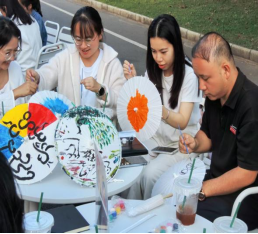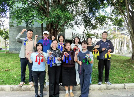 手工制作实践环节气氛热烈,辅导员们分组沉浸式体验民族传统技艺。穿针引线缝制哈尼族丢包,将互助协作融入针脚;精挑细选打磨彝族漆珠手串,在匠心雕琢中体悟文化传承;提笔勾勒傣族纸伞纹样,让审美创意与民族符号交融;蘸色描绘佤族木鼓图案,感受原始艺术的生命力;巧手编织拉祜族竹编小船,以经纬交错喻示民族团结。一件件充满出创意的作品不仅展现了辅导员们的动手能力,更成为民族情感的物化载体与具象表达。