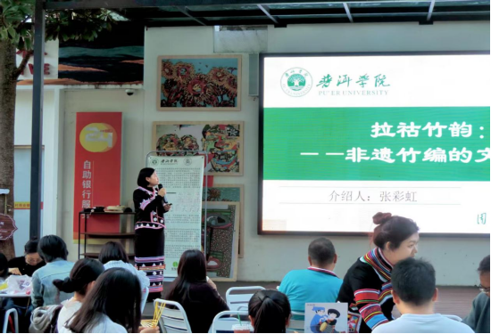 活动伊始,张彩虹老师介绍了论坛的主旨内涵和活动流程。在民族文化活动简介环节,经济管理学院五位辅导员依次汇报了哈尼族、彝族、傣族、佤族、拉祜族的文化特色,从哈尼族丢包的跨族跨国情感交流到彝族漆器中“天人合一”的哲学智慧,从傣族油纸伞的审美意蕴到佤族木鼓的精神图腾,再到拉祜族竹编千年的技艺传承,生动诠释了各民族“一心一德,团结到底”的文化基因,为后续实践环节奠定了思想与文化认同基础。