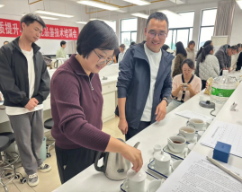 在实操环节,参与老师以五人为一组,领取审评器具与五款风格各异的普洱茶样,开展沉浸式审评体验。从观察干茶外形,到按照标准流程完成冲泡,再到细致品鉴茶汤的色、香、味、底,老师们在实践中逐步掌握了科学评茶的方法,切身感受了普洱茶文化的深厚底蕴与审美趣味。随后的交流分享阶段,多位辅导员积极发言,分享了对不同茶样的感官体验与品饮感悟。